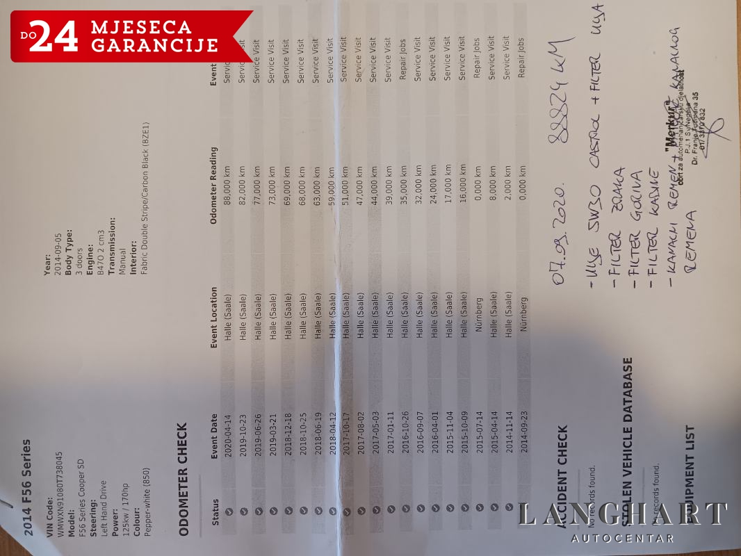 Kupnjom kod LANGHART- Jamstvo do 24 MJESECA- U cijenu uključen redovan SERVIS- Moguća provjera u OVLAŠTENOM servisu- Pismena garancija na KM- Bez troškova prijenosa- Povrat vozila unutar 15 dana preko NEOSTAR- Online kupovina vozila- BESPLATNA dostave vozila na kućnu adresu- ZAMJENU Vašeg vozila za vozilo iz naše ponude- Ugovaranje LEASING sa svim leasing kućama-Sve ovdje sadržane informacije kreirane su da budu što detaljnije i točne--Ne odgovaramo za nenamjerne pogreške u opisima vozila i cijeni, ali nastojimo biti što precizniji i točniji